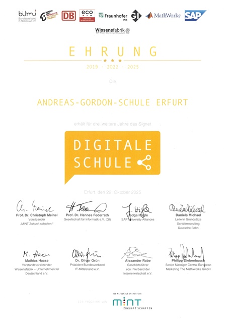 Am Mitwoch, 22.10.2025 wurde die Andreas-Gordon-Schule zum dritten Mal mit dem Signet "Digitale Schule" ausgezeichnet.