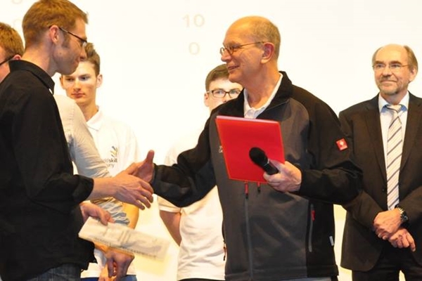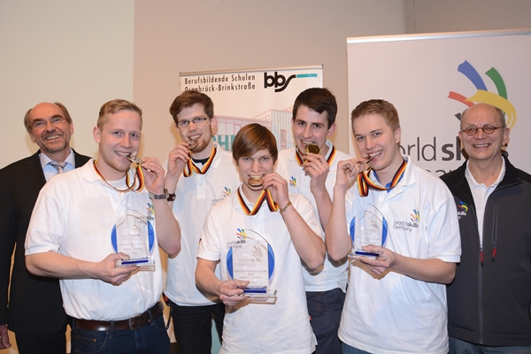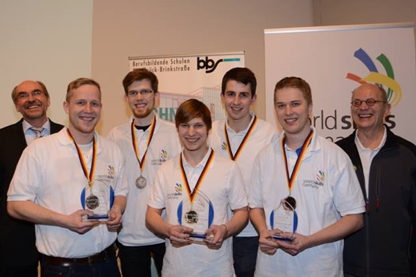 In der dortigen BBS-Aula in der Brinkstraße hatten zuvor drei Tage lang die acht teilnehmenden Teams - darunter ein französisches Gastteam - ihr Können unter Beweis gestellt. Die Finalteams der „Deutschen Meisterschaft im WorldSkills Germany-Berufswettbewerb Mobile Robotik 2014" kamen aus Berufsschulen in Pfaffenhofen, Erfurt, Goslar und Osnabrück. Die jungen Fachkräften im Alter unter 25 Jahren sind angehende Elektroniker für Automatisierungstechnik bzw. für Geräte- und Systemtechnik und Mechatroniker.