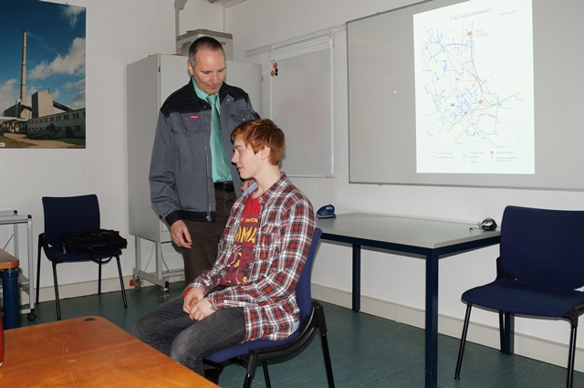 Unsere norwegischen Gastschüler waren am Dienstag, dem 10.03.2015 zu einem Besuch bei Alexandra, Annabell und Petra eingeladen. Dabei handelt es sich nicht um junge Damen, sondern um zwei Gasturbinen und eine Dampfturbine im Gas- und Dampfturbinenkraftwerk (GuD) der Stadtwerke Erfurt. Trotz anstehender Revision hat sich der Kraftwerksingenieur Herr Veitenhansel die Zeit genommen unsere norwegischen Gastschüler sehr ausführlich und bildlich die Kraftwerkstechnik theoretisch zu erklären. Auch der sehr hohe Wirkungsgrad der Erfurter Kraftwerksanlage wurde sehr detailliert besprochen.