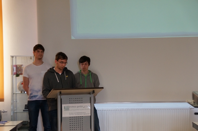 Am Dienstag, den 14.04.2015 wurden die Preisträger in der Aula prämiert. Dem Publikum, bestehend aus den IT-Schülern der zweiten Ausbildungsjahres und Kolleginnen und Kollegen der Schule, wurden die Gewinnerbeitäge präsentiert. Anschließend die Prämierung vorgenommen.
