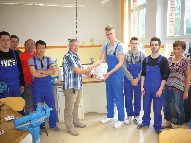 Im fachpraktischen Unterricht etwas Nützliches herstellen und nicht Übungswerkstücke, die anschließend nicht mehr benötigt werden, das wird von unseren Berufsfachschülern sehr geschätzt. So haben Schüler der BFS13 unter der fachmännischen Anleitung von Herrn Knaak in den letzten Wochen acht 230V-Versorgungsbaugruppen gefertigt. Diese wurden am Freitag, den 12.06.2015 unter Beisein von Frau Eck (Abteilungsleiterin Abt. 1) offiziell zur Nutzung an Herrn Eckardt (Abteilungsleiter Abt. 2) übergeben. Der Stolz unserer Schüler auf die geleistete Arbeit war dabei ganz deutlich zu spüren. Die Versorgungsbaugruppen werden unsere Laborausstattung ergänzen.