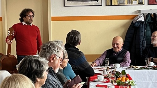 Gemeinsam mit unserer Hausmeisterfamilie Kahlert bereitete wieder der örtliche Personalrat dieses Treffen vor. Auch der Religionskurs von Frau Gramenz-Heß hat in diesem Jahr mitgeholfen den Raum sehr geschmackvoll zu schmücken und auszugestalten. So konnten die über 20 Gäste in einem sehr gemütlichen Rahmen von Personalrat, Schulleitung und weiteren beteiligten Kolleginnen und Kollegen mit Kaffee und Stollen empfangen werden. Neben den aktuellsten Informationen vom Schulleiter, Herrn Karsten Pohlemann, einem tollen musikalischen Beitrag von Herrn Alexis Veigel, standen natürlich die Gespräche zu den "guten alten Zeiten" und den aktuellen Veränderungen im Mittelpunkt der Veranstaltung.