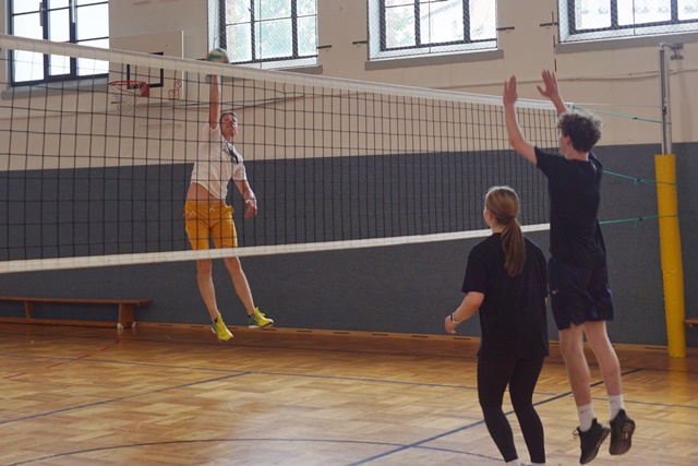 Als Abschluss des Sportaktionstages gab es dann noch das obligatorische Volleyballspiel der erstplazierten Schülermannschaft gegen unser Volleyball-Lehrerteam. Hier konnte das Lehrerteam nach harten Kampf um jeden Punkt siegen.