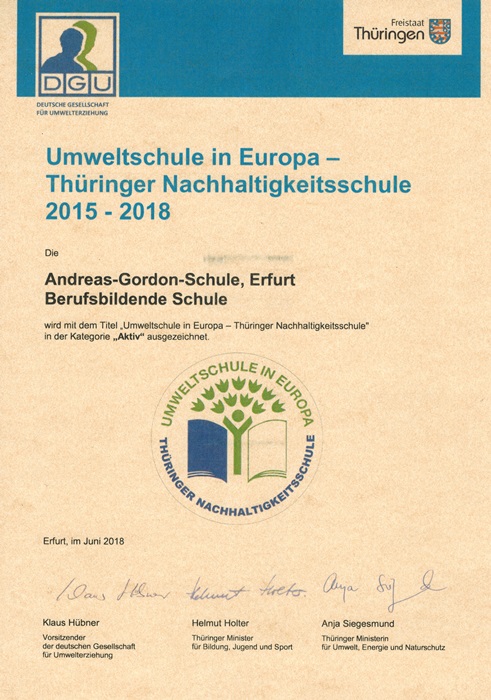 AGS: Umweltschule in Europa – Thüringer Nachhaltigkeitsschule