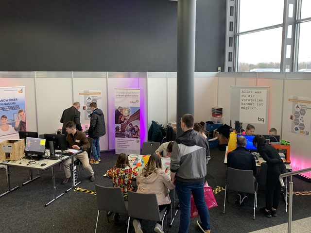 Die Veranstalter der Thüringen Ausstellung wurden zum Kinderkult Event auf die Andreas-Gordon-Schule aufmerksam. Seit inzwischen drei Jahren präsentiert sich die AGS mit einem digitalen Klassenzimmer auf dem Kinderkult. Die für Kinder und Jugendliche sehr ansprechenden Themen wie 3D Druck, Microcontroller-Programmierung und Roboterprogrammierung sind so attraktiv, dass der Stand immer sehr gut besucht wird. Dies war der Grund, dass die Veranstalter der Thüringen Ausstellung, die übrigens in diesem Jahr ihr 30. Jubiläum feiern durfte, die AGS mit genau diesem Angebot zum Familienwochenende am 07. und 08. März 2020 eingeladen hat.